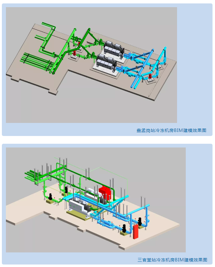 福加采用BIM裝配技術(shù)結(jié)合高效機房節(jié)能技術(shù),對三個站點的冷凍機房進行高精度建模和全專業(yè)深化設(shè)計,由廣東水電二局精準(zhǔn)施工,以搭積木的方式高效完成了冷凍機房的安裝。